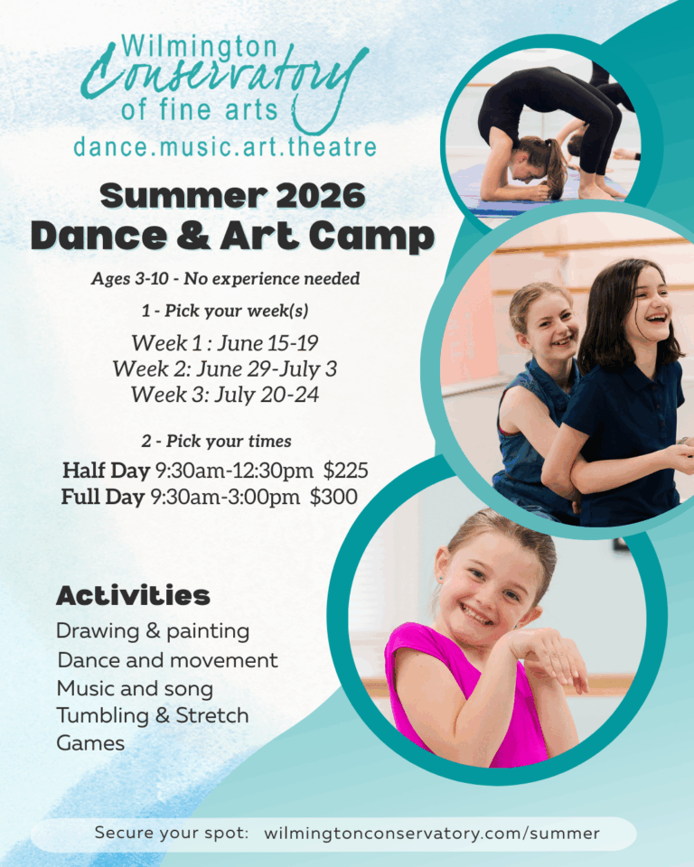 This July 1st through July 24th, Wilmington Conservatory is offering flexible classes options for all ages and levels (3+ years). Enjoy four-weeks of classes for all ages with the freedom to pay by class or pay for all four weeks with a “July Class Pass” at a major discounted price—perfect for those looking to stay active and beat the heat! Our July dance classes provide an easy, affordable, and convenient way to try WCFA before the upcoming school year!